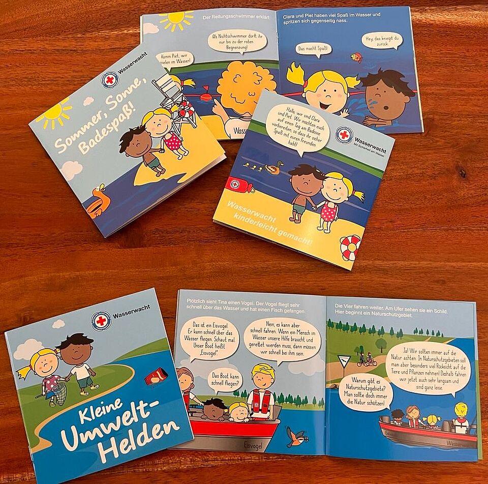 Auf kindgerechte Art und Weise erfahren die Kinder, warum es wichtig ist, die Natur zu schützen und was jeder Einzelne dafür tun kann. Aktuell ist ein weiteres Minibuch zum Thema Schwimmenlernen in Arbeit, außerdem gibt es eine neue Auflage des Minibuches "Sommer, Sonne, Badespaß". In 2023 wird ein weiteres Minibuch erscheinen: "Was ist die Wasserwacht?".