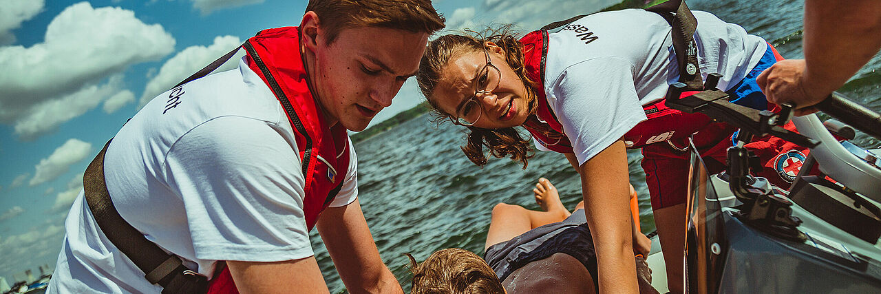 Menschenleben retten, Schwimmer*innen und Rettungsschwimmer*innen jeden Alters ausbilden. Und das in Schwimmbädern, an Flüssen, in Seen sowie am Meer. Das sind die Kernaufgaben der ehrenamtlichen Mitglieder der Wasserwacht des Deutschen Roten Kreuzes.